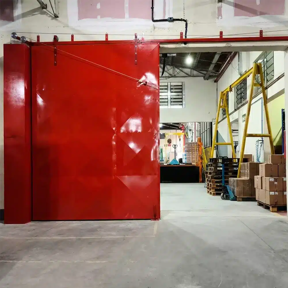 O Portão Industrial de Correr Simples é a solução definitiva para compartimentação de áreas em grandes complexos industriais e comerciais. Projetado para conter as chamas por até 240 minutos (P240), este equipamento é vital para a preservação de patrimônio e vidas, atendendo rigorosamente à norma ABNT NBR 11.711.